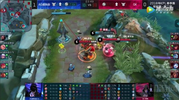 可能是上场的4杀让梦泪找回了比赛的感觉,在前期取得人头优势的情况下,AG频繁的入侵GK野区,使得GK只能疲于防守;同时在边路位置上,Vv梦奇一直纠缠着迷神的关羽,使得这位第一周最佳阵容的上边路,一直展不开马蹄。