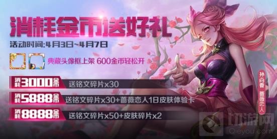 春日小长假,王者大福利!600金币开典藏头像框,还有金币、铭文碎片等你来拿!每日消耗金币还可领取内测专属皮肤-蔷薇恋人体验卡、皮肤碎片好礼!