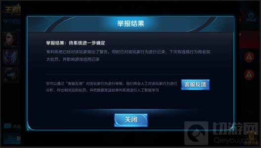 当您举报一个玩家之后,有些情况我们需要审判系统的进一步确认,您也可以通过“客服反馈”按钮进行反馈”