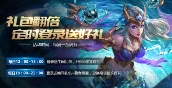 新增午间登录活动,每天的12:00~14:00登录即可额外领取午间礼包1份,有机会开出铭文碎片*666。