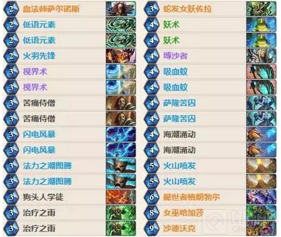这套蚊子萨的打法相当简单,前期主要任务是过牌,有机会的话攒一下蚊子的战吼,拖到后期之后用沙德沃克无限触发蚊子、萨隆苦囚、撼世者以及蛇发女妖的战吼,达到无限斩杀的目的。萨隆苦囚是这套卡组中比较关键的牌,因为沙德沃克触发的战吼是有它本身释放的,所以萨隆苦囚的战吼复制的也是沙德沃克。