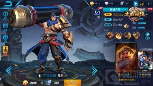 苏烈是一个输出爆炸、坦度爆炸的战士。拥有被动的苏烈在前期对拼中十分强势,一旦敌方没有足够输出击杀苏烈两次,迎接他的只有灭亡~苏烈3个主动技都带有控制效果,在保护友方脆皮的能力上十分出色!