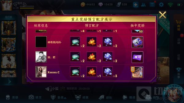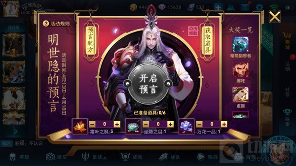 这个明世隐的预言活动,持续时间是13日到18日,奖励有S级皮肤和两个永久英雄,另外还有一个头像框宝盒。可以说,这个活动还是比较良心的,必得其中一个奖励。但是,这个活动要集齐6个道具,才能开启预言。每一种不同的配方,开启后得到的奖励也是不同的。有玩家透露了三种预言配方,注意一个细节,100%得S级皮肤。