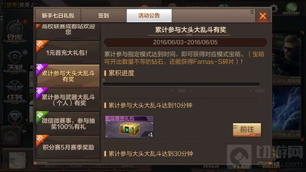 累计参与大头大乱斗达到10分钟,可得乱斗尊贵礼包*1