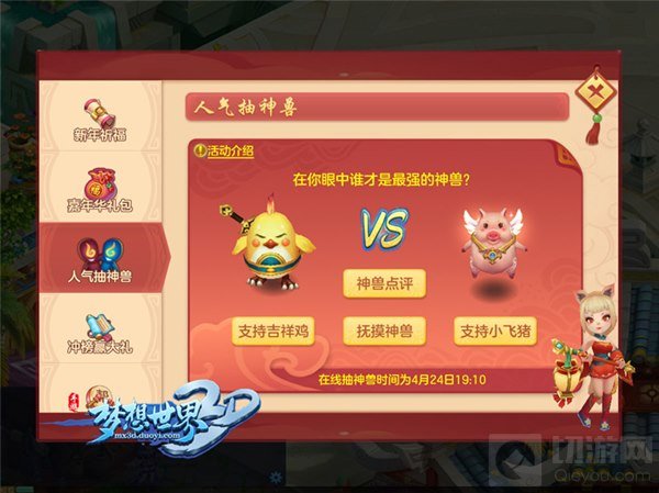 《梦想世界3D》手游新服“百花齐放”将于今日正式开启,届时将会同步开放四大新服活动,升级即可领取礼包、升级即可领取礼包,神兽、周边等好礼,活动期间,只要玩家在新服达到40、50级并满足活跃度要求后,即可获得冲级礼包,符合条件的所有玩家中将开启投票活动,并将产生幸运儿,获得系统赠送的神兽之卵,羡慕大佬的仙宠太过拉风?望尘莫及? 不存在的,现在,人人都有机会!
