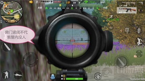 2、一般来说,游戏的初中期需重点关注房屋的状况,原因是此时大多数的战士会藏在房屋内,极少有在野外跑动的。
