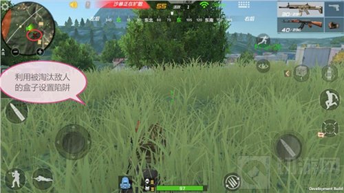 实际上,多数战士发育的方式是舔包而不是在房区内搜刮,原因是前者更容易不劳而获,也容易获得好的物品;而后者则需小伙伴耗费大量的时间精力,期间还需冒着被淘汰的危险。因此,一些机灵的战士会利用战士的这种心理提前布置诱饵,即主动将将物资丢在马路上或利用地面遗落的包裹设置埋伏。因此,在实战中若遇见这种情况需提高警惕,防止被阴。