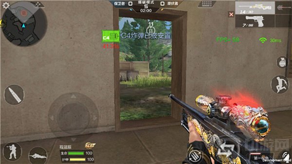 当系统提示C4以安装时,保卫者应当放下此时的所有的事情,及时的赶到安包点快速的拆除C4,毕竟除去赶路和消灭潜伏者的时间,留给保卫者拆除C4的时间已经不多了,保卫者一定要加以珍惜。在保卫者赶到安包点是一定要谨慎,因为此时在C4的周边肯定是有潜伏者隐藏,如果一不小心就会被其击杀。因此在冲点之前,保卫者可以利用闪光辅助,当进入点位发现潜伏者之时可以快速的将其击杀。在突破进点位之后,保卫者一定要快速的移动探查点内的情况,如果保卫者探查速度过慢或者在原地停顿不动的话,是有很大的几率会被隐藏的潜伏者狙击手命中的。