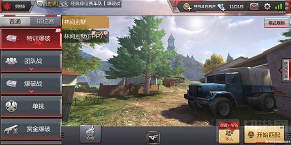 游戏画面来说是比较逼真的了。地图变成有草/河/树/村庄的写实风格,玩家有趴下隐蔽/游泳/装备配件/一三人称切换的能力。当然了很多小伙伴也有了解这个模式和爆破模式获胜玩法相同在这就不细说了。如图右下角第一视角和第三视角切换的地方,具体用哪个模式根据小伙伴自己的喜爱哦。写实爆破模式为了平衡性和TPS视角下武器展示动作的考虑,特训中限制了一部分的武器。会自动替换为黄金AK,黄金沙鹰-A,尼泊尔。如图的右上角,带了一部分被限制的枪械被自动替换为默认的枪械。在这里提醒各位小伙伴,一定要看清模式介绍,携带自己喜爱又可以被带进游戏模式中的枪械哦。