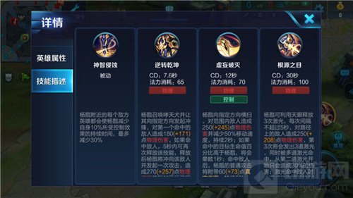 解析:杨戬附近的每个敌方英雄都会使杨戬减少所受控制效果的持续时间。杨戬身边的敌方英雄越多,所受到的控制时间越低,这使得杨戬在对战时更加的灵动。