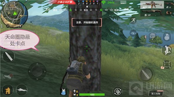 2、外围架点:如果小队的物资储量不足那么不妨在天命圈外围视野宽广处架点,进而对向天命圈前进的其他队伍实施打击。注意,期间尽量以拖延时间为主,不要主动从躲藏的位置跑出。
