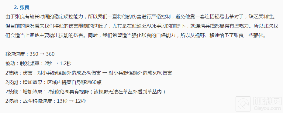 4月20日的那次更新,直接加强了张良的伤害,特别是在清理兵线和野怪上,让本来清兵显得有点乏力的张良,一下子有了非常高效的清兵能力。