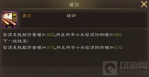 有根据生平为诸葛亮配备了“神算阵法”和“睿智”,增加技能效果并为自己产生护盾。