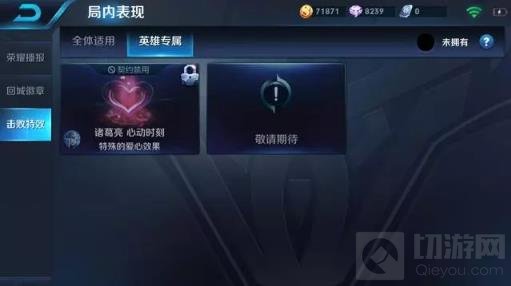 诸葛亮专属特效命名:心动时刻,拥有红色的爱心特效,效果非常不错,比金色闪光强多了。