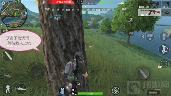 小伙伴在成功将敌人淘汰后可以利用其落地的盒子作为晋身的资本。简单来说,随着时间的推移,被淘汰敌人背包中的资源将越来越多,这对一些资源稀缺的战士无疑是有着巨大诱惑。此时,小伙伴可藏在隐蔽点位守株待兔,等待他人舔包时顺带的收获人头。