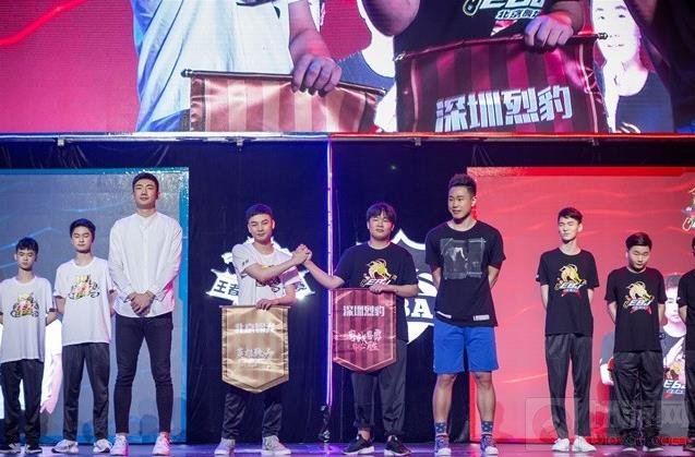 表演赛环节之后,便是来自深圳烈豹俱乐部代表队、北京翱龙俱乐部代表队十名电竞选手的主场。如同电竞从传统体育那里接过竞技的接力棒一般,战队队长也从篮球明星的手里接过战旗。现场,两位荣誉队长分别拿起印有“深圳烈豹”和“北京翱龙”字样的战队队旗,然后将其交到两位战队队长手中。之后,战队队长进行了双方队旗互换的仪式,宣告双方友好竞技的开始。