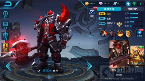 被动:激怒,典韦每一次击败英雄或者助攻会获得1层激怒效果,每层激怒效果会增加典韦12点物理攻击力,最多叠加20层。