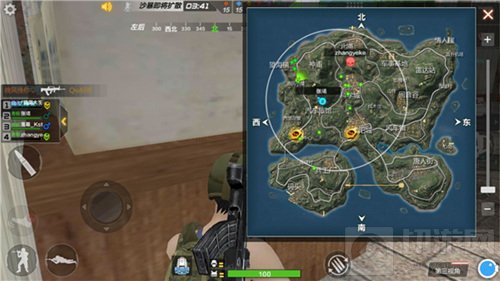 1、根据小地图绿色圆点的分布,小伙伴可实时掌握团队的动态,了解团队剩余的人数,从而制订针对性的应对方案,如向绿色圆点集中地带前进。反之,如果贸贸然的四处乱跑或可能进入其他团队的势力范围,进而有被群殴的概率。