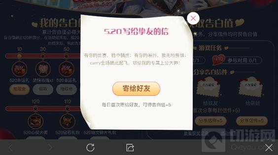 玩家每天可通过完成游戏任务和分享告白信件获得告白值,每日最多可获得35告白值。
