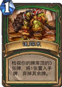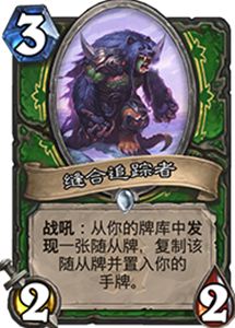 过牌能力不如其他职业优秀,又因为血量原因不得不比其他职业更快找到key牌,导致这类发现性质的卡必须满编,特别是缝合追踪者,发现并复制,能更快找到我们需要的小野猪,或者其他过牌卡。帮助我们更快过渡,但是追踪术相比之下有一个弊端,那就是会扔牌,如果3张卡里面有2张甚至3张都是key牌,那我们将非常难受,所以只带1张。不过它压缩牌库的能力还是值得赞赏的,相当于一次抽了3张,只不过另外2张不能使用罢了。
