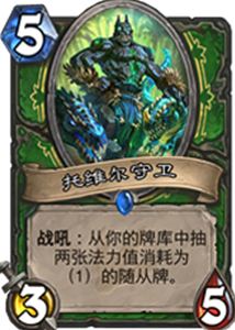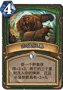 5费35身材有点亏,但是我们为的是它的效果,一套OTK卡组需要的就是强大的过牌,而猎人过牌又太有限,需要这张卡弥补,它能抽2张1费随从,在我们牌库有一大堆小野猪的时候,或者一开始只有2只的时候,都是可以用这个稳定抽小野猪的,定向检索key牌,非常稳,但要注意的是牌库有几张小野猪必须清楚,不然到时候只抽1张上来甚至没有,那就浪费了效果,不划算了。