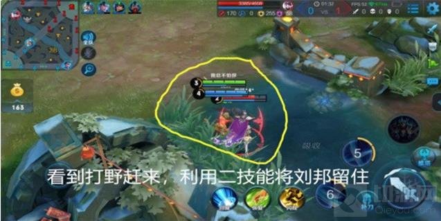小编主要讲一下前中后期应该注意的小问题和实战中能用到的小技巧。本次实战是走上路对抗到的是百里守约。那么面对射手时要注意两点:①走位靠后,不要被射手普通攻击消耗太多血量。②灵活走位躲避敌人的技能伤害,例如刘邦的一二技能连招,百里的二技能等。我们可以留意到,铠在上路3级时,己方打野刘备已经刷完第一波野怪并且到达4级,这时留意一下刘备的动向,如果刘备有gank上路的意向,那么铠可以走位略微靠前引诱敌方两人往己方打野所在草丛靠,并且保留二技能,先一技能减速,等待敌方交出位移技能后再用二技能留人。