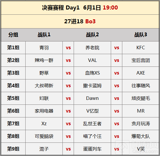 6月1日晚19点,公开赛第二季迎来决赛大战,27强交锋即将进入白热化!决赛首轮对阵安排如下: