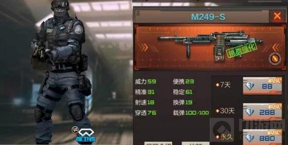 威力直逼60的M249-S,对于百发百中的战友讲,载弹100发,量身定制简直了呀!穿透力相比加特林-熔岩大了两点,穿透力的提高,意味着它要牺牲自己的便携能力,对于重型武器,谁还苛求它的体重呢,看看它的弹道,几乎没有偏差的射击,让你各种花样的摆动作。