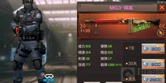 MG3-翔龙,威力63,名如枪身,一条飞翔的金龙盘旋在枪上,动动脚趾头就能想到,肯定是上流枪,非你莫属!相比普通机枪,它续航能力很好,精度也高,真实感受,自己体验下吧!