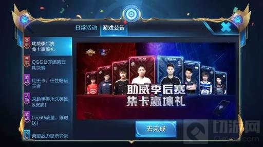 参与地点:活动面板——游戏公告——第一个【助威季后赛】