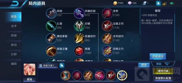 六神装推荐:急速战靴、末世、无尽战刃、破晓、泣血之刃、破军