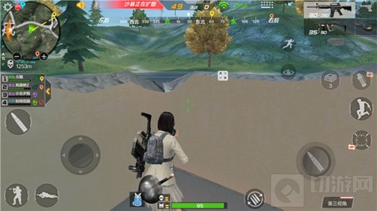 3、无论何时何地,一个良好的卡位都是小伙伴必须寻找的。此时,斜坡、房屋、树木、石头皆可作为隐藏的利器。当然了,如果因沙尘暴的因素而难以运动至掩体旁则可选择以烟雾弹开路。