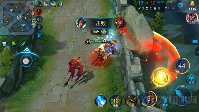 先走位靠近敌人,然后一技能推进去,一定要保证自己至少能推到一个人,这样才能让一技能减少30%的冷却时间。