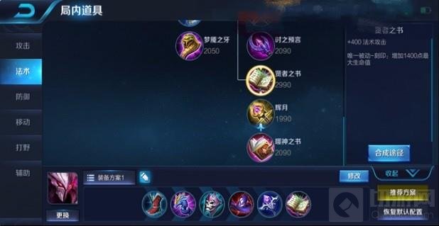 最后一件出贤者之书,贤者之书提供了干将400点法术攻击,并且其被动增加了干将1400点最大生命值,这大幅度提高了干将的保命能力。