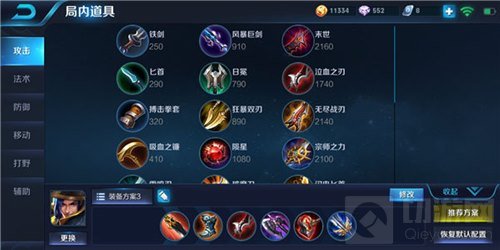 六神装:追击刀锋、急速战靴、泣血之刃、暗影战斧、碎星锤、破军