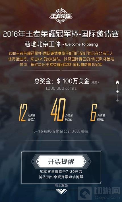冠军杯门票将于7月20日正式开售,目前售票预约已经开启,各位召唤师们可以通过下方的链接前往预约页面,享受开票短信提醒,绝不错过任何赛事信息!
