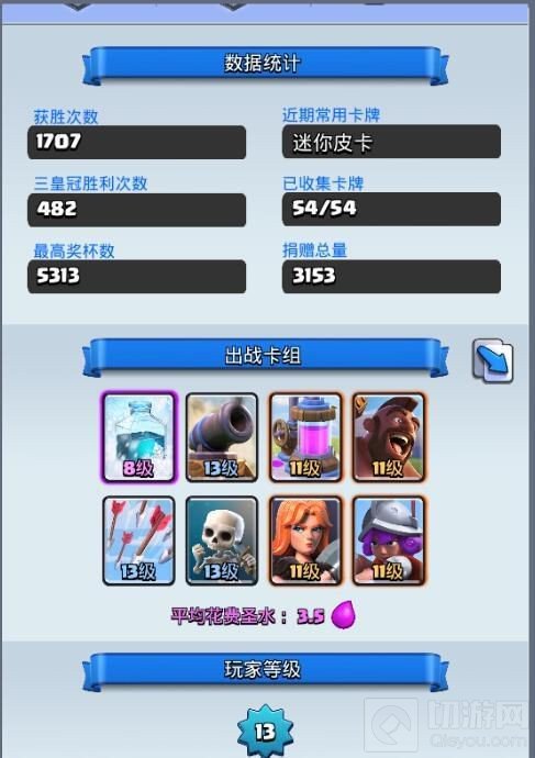 来看看卡组,本赛季冠军跟第二名的卡组都一样,都用冰猪流卡组,依托采集器来获得圣水优势,整体圣水花费只有3.5,机动性很强的卡组。