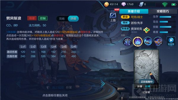 孙策的控制支援能力很强,打法上后期还可采用分推打法。孙策的单独作战能力非常强,中期可以自由行动。