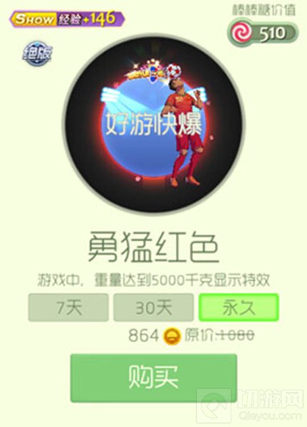 勇猛红色光环外部颜色主要是红色,员头顶足球非常勇猛!该光环可以让球宝的show值增加146点!