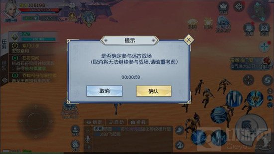 活动开始的时候,会有五分钟的报名时间。报名时间结束后,已经报名的玩家会收到一个提示,询问大家是否确定参与远古战场,确定后就会直接进入远古战场地图,这里最需要注意的就是报名的时间,如果错过报名的时间,远古战场入口关闭,就算貂爷我也无法将你们送进去。