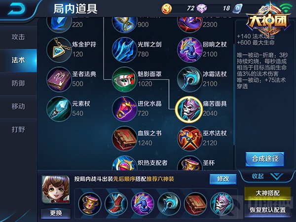 后期出装:血族之书+痛苦面具