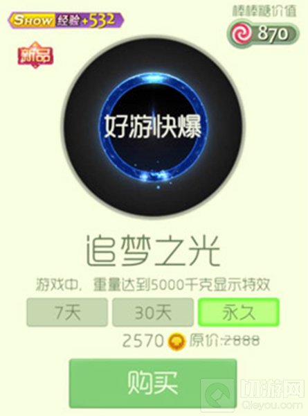 追梦之光光环外形看上去像围着一圈光芒,然后中间会有一盏灯,代表这道光照亮梦想!该光环可以让球宝的show值增加532点!