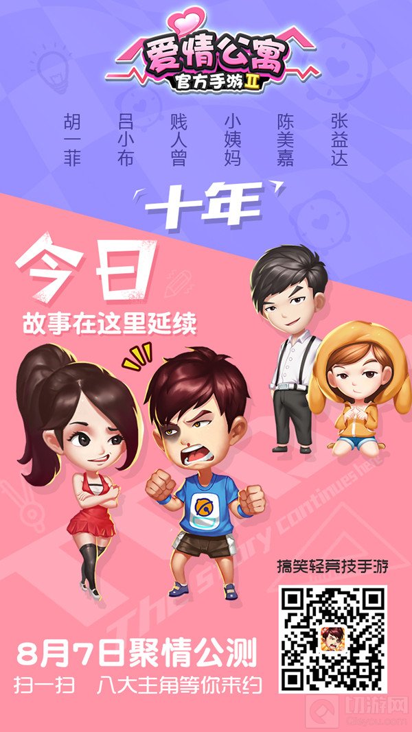 《爱情公寓》官方同名手游是爱情公寓IP方正版授权的.io休闲竞技手游。自内测起,游戏就凭借高度还原IP和“搞笑轻竞技”的玩法受到广泛关注与期待。今日,游戏开发商久游网终于正式宣布:《爱情公寓》官方同名手游聚情公测定档8月7日!
