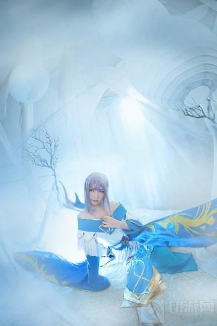 由于原著中叶紫芸修行的功法以及融合妖灵都是冰系的,所以在作品拍摄时,背景选择了大面积的冰蓝色,更为贴合叶紫芸的性格。而整体造型也是营造出一个专属于叶紫芸的冰雪世界,仿佛下一秒叶紫芸就会穿过屏幕来到玩家面前。