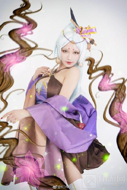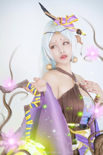 coserKONELA选择用白色的背景来突出杨欣携带的植物妖灵特征,与治疗的能力。