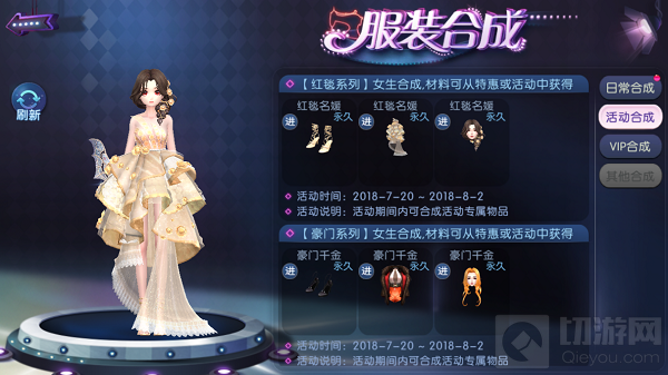 而红毯系列的女装就不一样了,晚礼服造型的裙子,采用奢华大气的金色。头上金色花朵装饰显得温婉淑女,蓬松的裙摆加上不规则的旋转式轻纱,身上的金色花朵和头上的发饰相呼应,整套装扮给你一种气质名媛的感觉!小公主们一定不能错过这套时装哦~