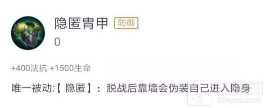 隐匿胄甲:脱战靠墙隐身,适合任何英雄,提高生存能力,轻松苟到前三;