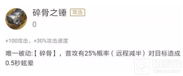 碎骨之锤:普攻附带晕眩,适合近战攻速型英雄,比如:老夫子、典韦、韩信等;