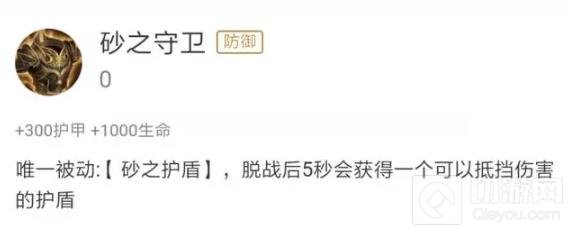 砂之守卫:脱战获得护盾,适合任何英雄,提高防御能力;