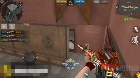 在下层,对于保守对枪的敌人,我方可以迅速从左边突进,居高临下取得先手;在面对不断从建筑内突入己方阵地的敌人则可以在建筑己方出口的侧面蹲守敌人。